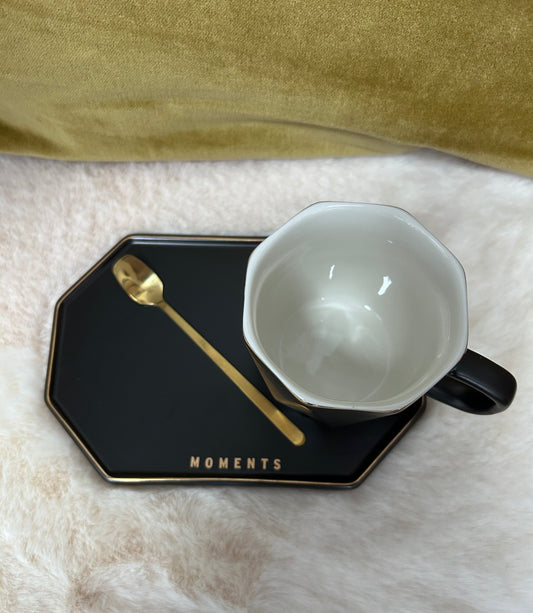 Ensemble Tasse, sous-tasse et cuillère Moments Black - J LINE