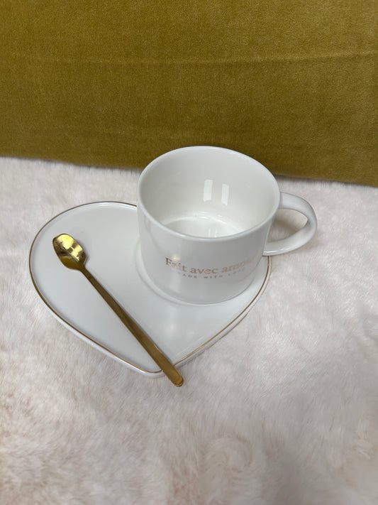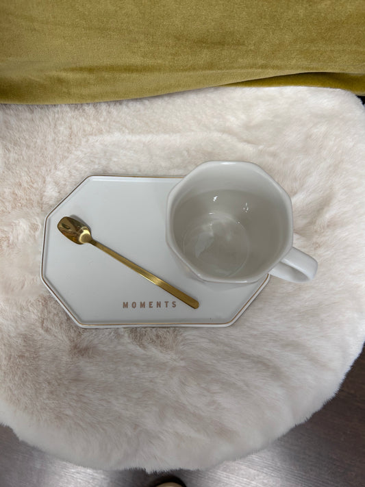 Ensemble tasse et sous-tasse et cuillère dorée - J LINE