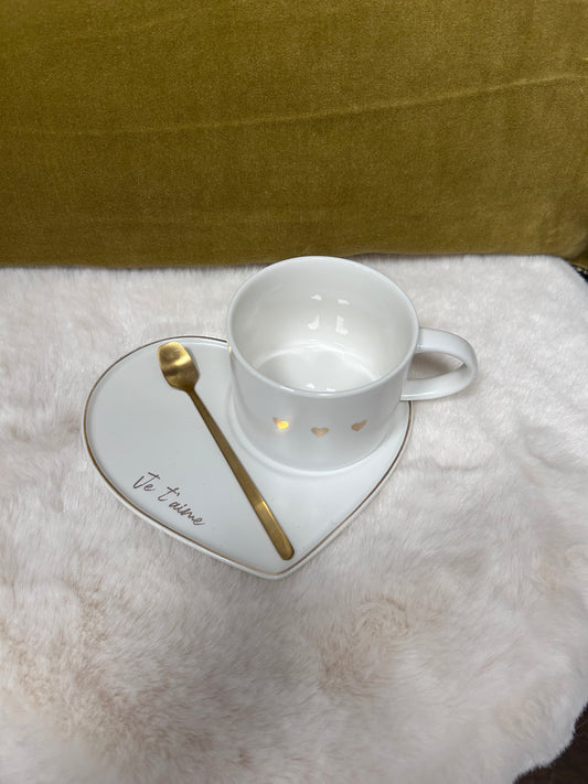 Ensemble Tasse, sous-tasse et cuillère dorée - J LINE