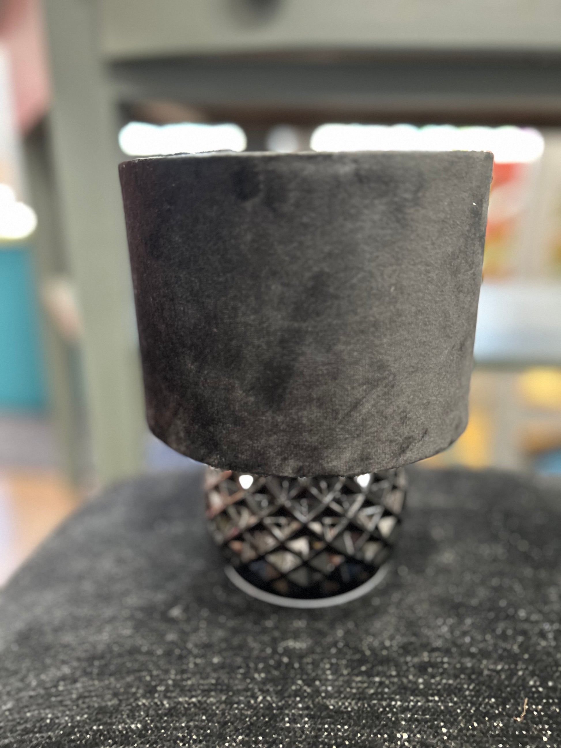 Lampe de table led avec pied en verre ciselé et abat jour velours.