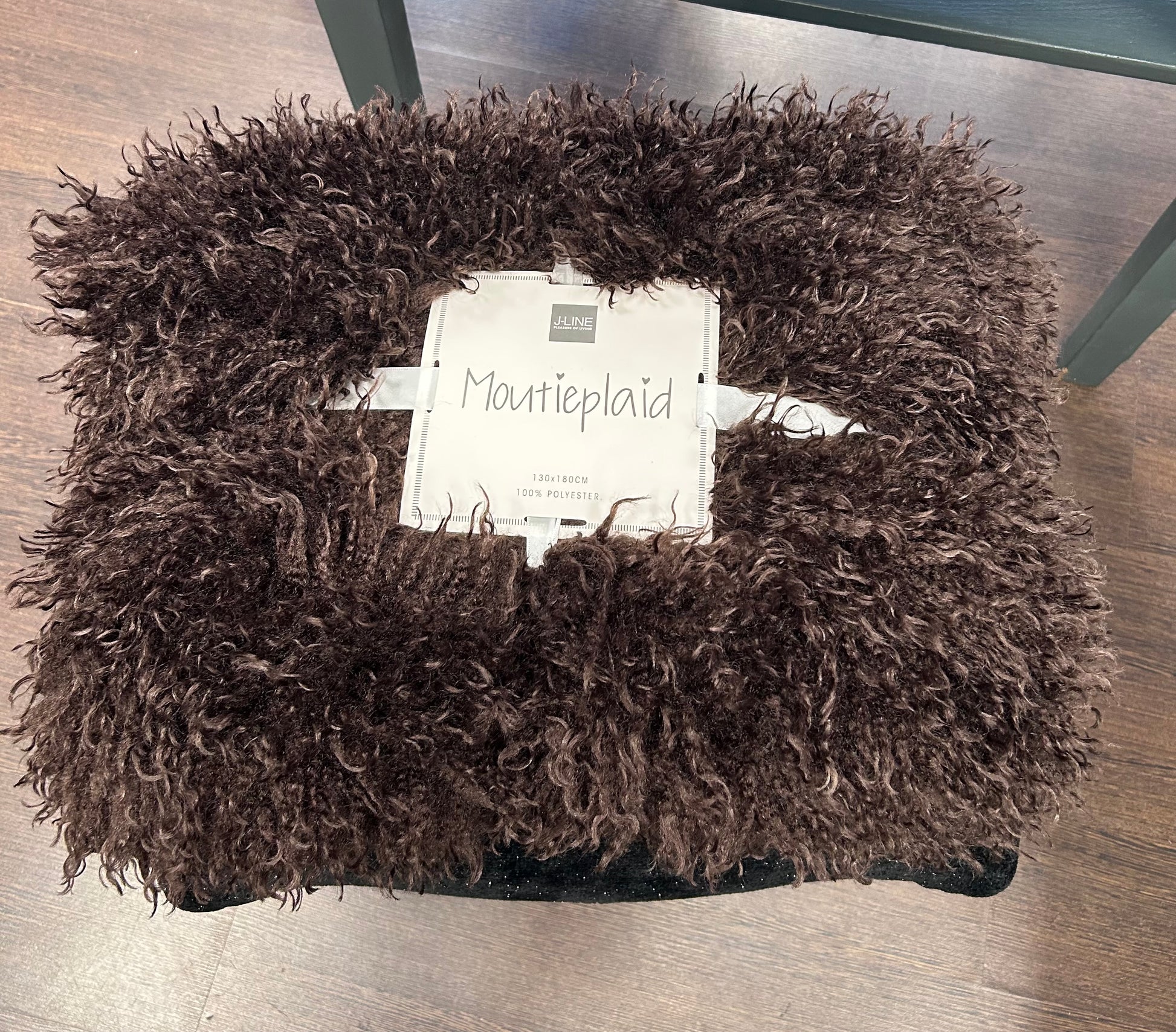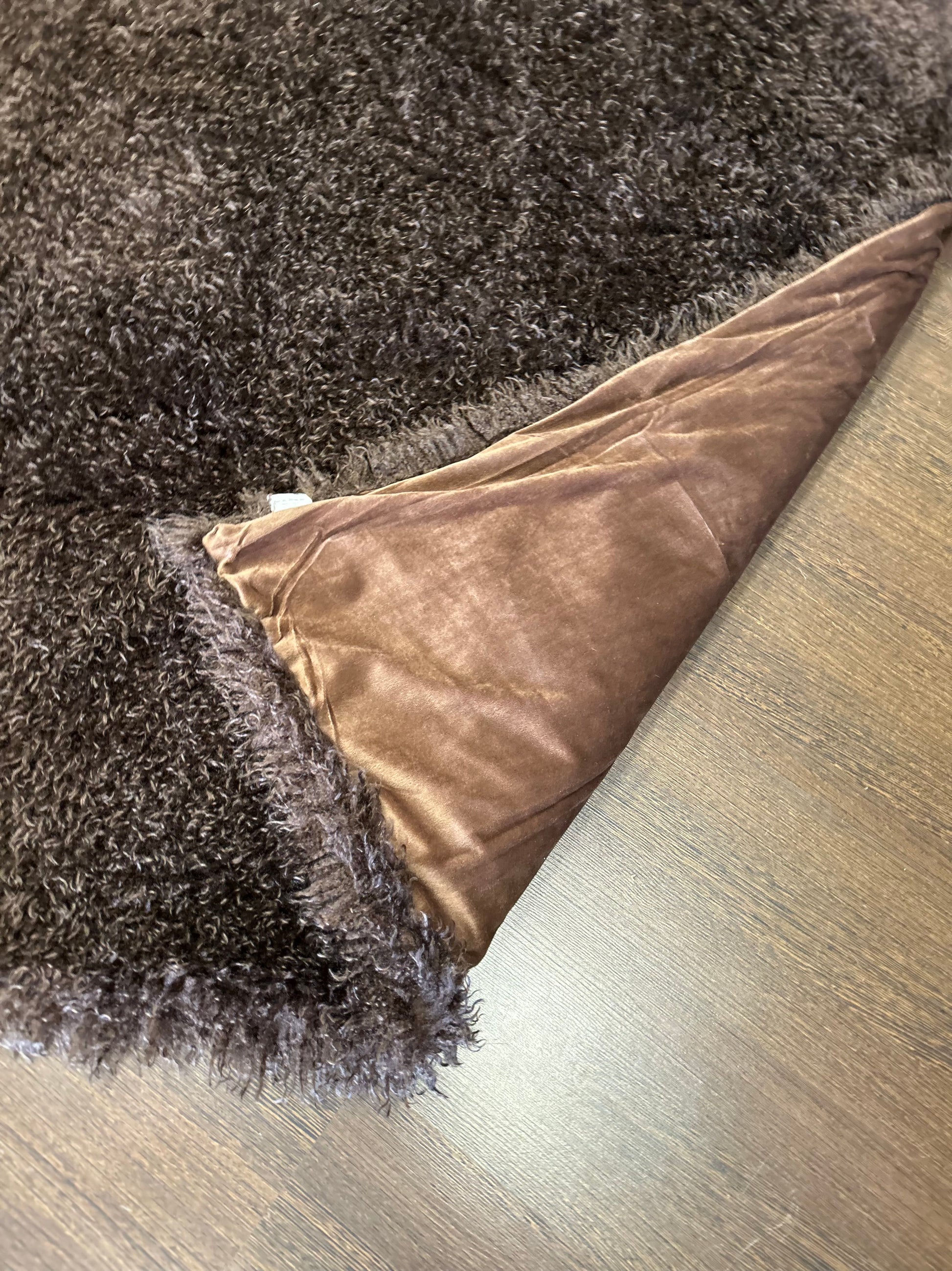 Plaid large en fausse fourrure marron effet peau de mouton en polyester.